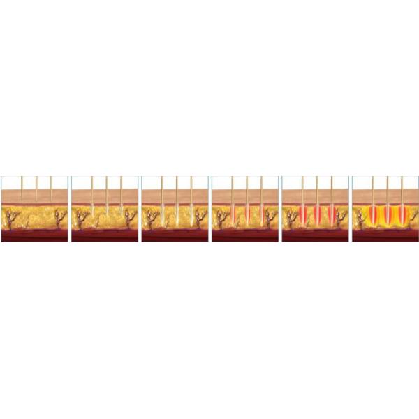 Microneedles fractional RF&Superficial Fractional RF system through the special design of many fractional needles point array.The high speed digital motor controls order through the epidermis and the dermis accurate to control the depth of 0.25-3mm,again by the end of lattice needles release RF,stimulate collagen and elastic tissue,and is not thermal damage skin layer potential.When skin tissues through this process,the epidermal layer is safe,RF energy can well to penetrate to the dermis stimulate collagen protein hyperplasia,not only is the best way to improve the scars,but also long term tighten skin wrinkle.